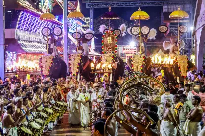 Guruvayur Utsavam is a grand annual festival celebrated at the Guruvayur Sri Krishna Temple in Kerala, attracting thousands of devotees from across India. This vibrant festival usually lasts for ten days and showcases traditional rituals, cultural programs, and religious ceremonies. Devotees participate in special poojas, processions, and offerings to Lord Krishna, seeking his blessings for prosperity and well-being. One of the highlights of the festival is the elaborate elephant procession, accompanied by traditional music and devotional chants. Guruvayur Utsavam also features classical dance, devotional songs, and community feasts, reflecting the rich cultural heritage of Kerala. The festival creates a deeply spiritual and joyful atmosphere, making it a significant event for devotees and visitors alike.